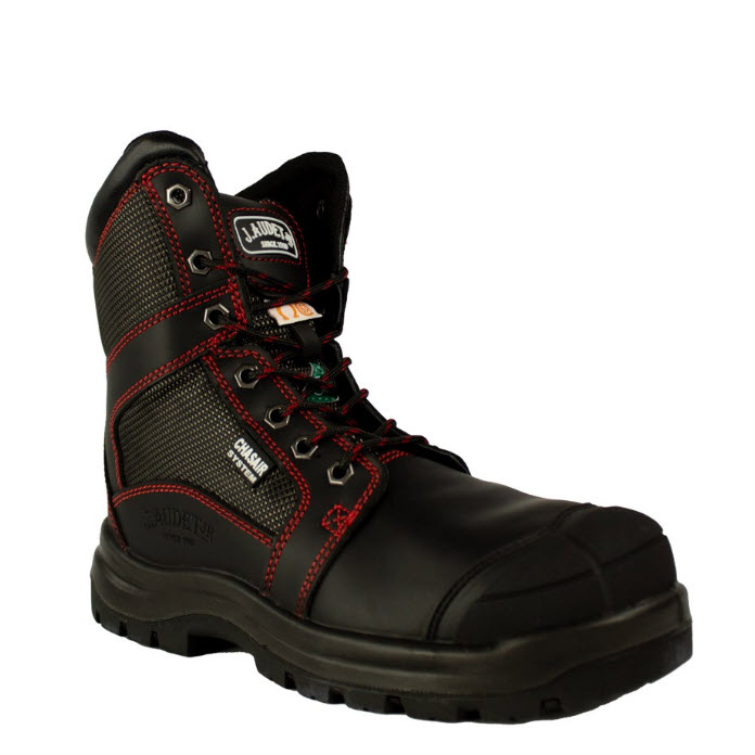 • Découvrez les bottes de travail Modèle M501NR de J. Audet Jr, conçues en cuir de vache pleine fleur et Cordura pour une robustesse accrue. Avec une hauteur de 8 pouces et un embout de protection en acier, ces bottes offrent une protection optimale. Le collet rembourré en forme de V assure un confort exceptionnel et une bonne mobilité, tandis que la semelle intérieure BASF PU Climate Control ELASTOPAN™ améliore le confort et l’absorption de l’humidité. Dotées de la technologie CHASAIR™ pour une ventilation efficace et d’une semelle intercalaire PU résistante à l’huile, ces bottes sont idéales pour les environnements de travail exigeants. Conçues pour la performance et la durabilité, elles sont le choix parfait pour vos journées de travail intenses.